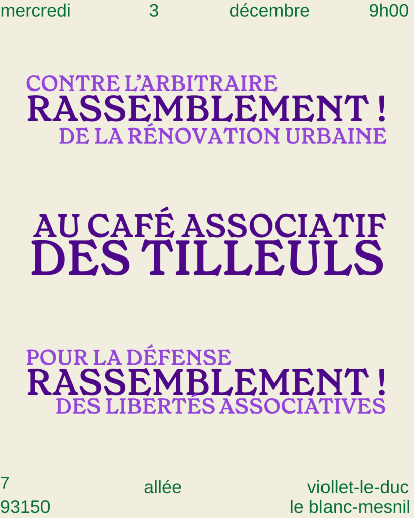 Rassemblement au Tilia ce mercredi 3 décembre à 9h